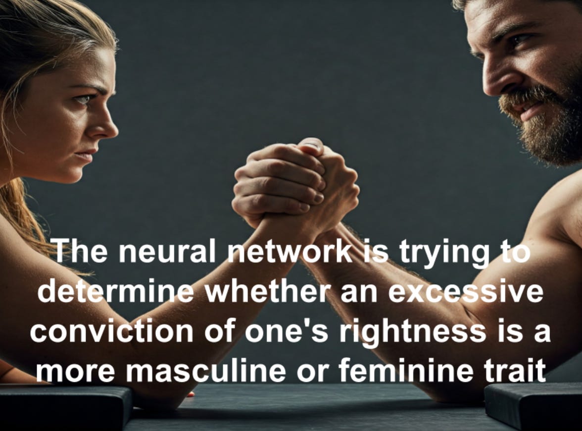 The problem, therefore, was to find a digital representation of words that would reflect their meaning. The winner in this category turned out to be the vector, which is one row of Excel, with numbers in each cell. These numbers somehow encode the intensity of certain features of the word. Such a feature is, for example, a place in the continuum of masculinity and femininity. The word beauty will probably be more feminine, and the word strength masculine. A vector is like the DNA of a word, encoding a whole lot of associations associated with it. This DNA is not directly designed by humans, but is created by itself in the process of training a neural network, which we will talk about later.